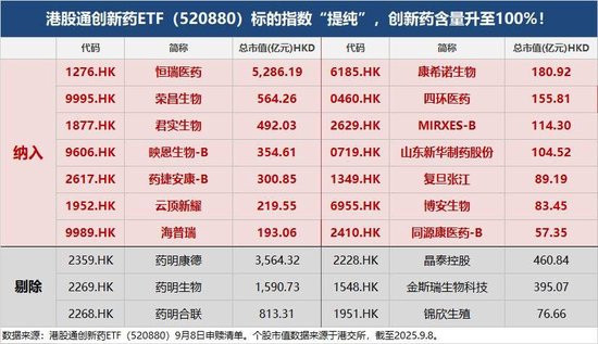 港股通创新药ETF(520880)被动跟踪恒生港股通创新药精选指数,该指数“提纯”修订于9月8日正式生效,完全剔除CXO,100%聚焦创新药研发类公司,精准反映创新药产业发展趋势。